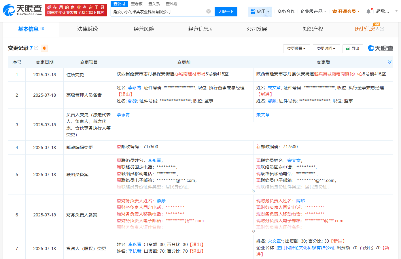 值得注意的是,变更记录显示,今年7月,该公司法定代表人、执行董事兼总经理、股东均发生变更。知识产权信息显示,该公司前股东李某某名下的陕西匹诺曹电子商务有限公司已于今年5月申请注册多枚“aaaaapple”,当前商标状态均为等待实质审查。