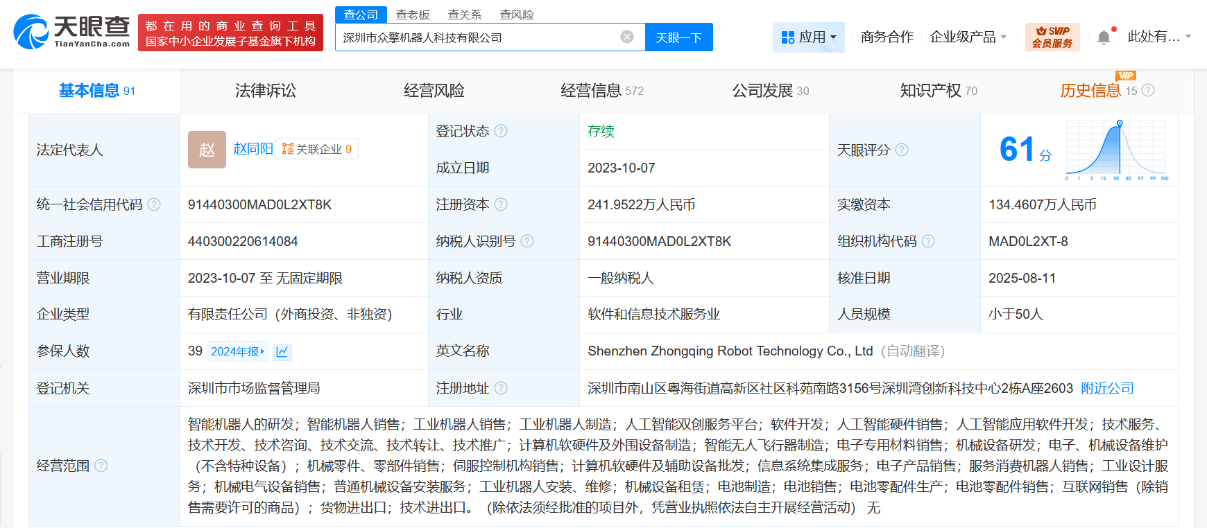 工商信息显示,深圳市众擎机器人科技有限公司成立于2023年10月,法定代表人为赵同阳,经营范围含智能机器人的研发、智能机器人销售、工业机器人销售、工业机器人制造、人工智能双创服务平台、人工智能硬件销售、人工智能应用软件开发等。股东信息显示,该公司现由赵同阳、深圳市众鸣投资合伙企业(有限合伙)、北京成璟管理咨询合伙企业(有限合伙)及上述新增股东等共同持股。