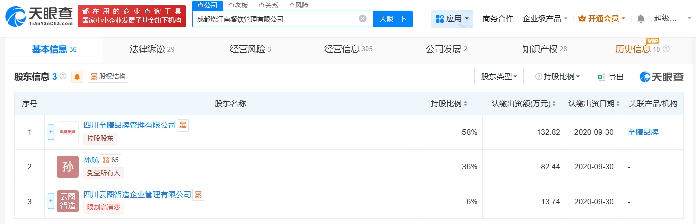 该公司成立于2020年9月,法定代表人为罗毅,注册资本229万人民币,经营范围包括餐饮企业管理、餐饮服务、食品加工等,由四川至膳品牌管理有限公司、孙航等共同持股。风险信息显示,该公司存在多条限制消费令、失信被执行人(老赖)信息,还曾被申请破产审查。公开信息显示,黄晓明为烧江南烤肉的品牌官。