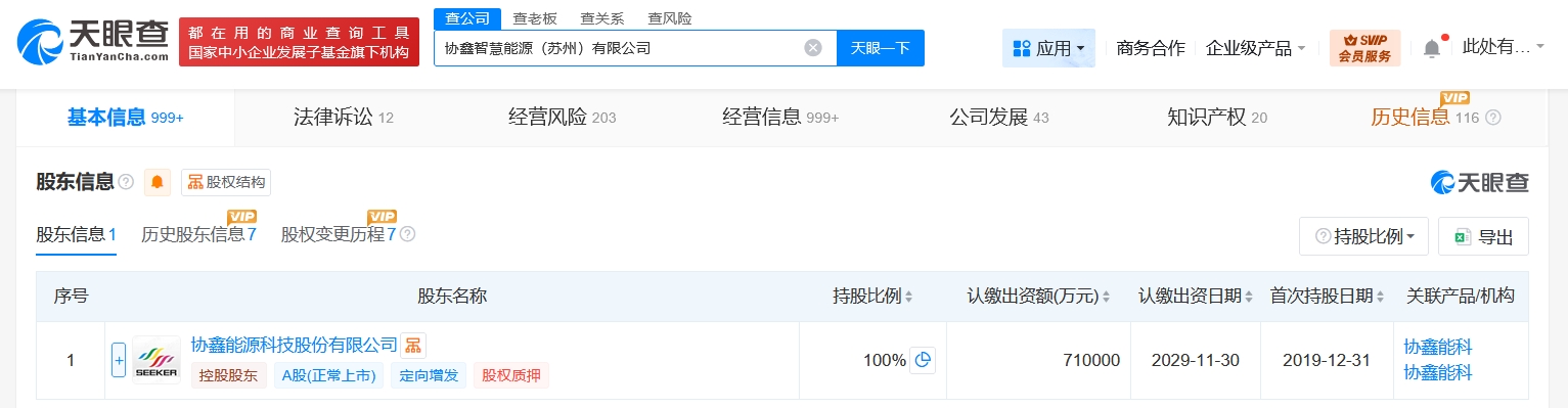 该公司成立于2009年6月,法定代表人为费智,经营范围含清洁能源投资、能源信息智能化服务、能源技术的科技研发和咨询服务、能源高效阶梯综合利用、能源大数据服务等。股东信息显示,该公司由协鑫能科(002015)全资持股。