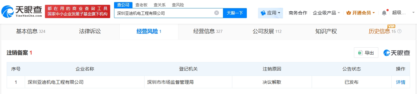 天眼查工商信息显示,近日,深圳亚迪机电工程有限公司登记状态由存续变更为注销。此前,该公司已发布注销备案公告。