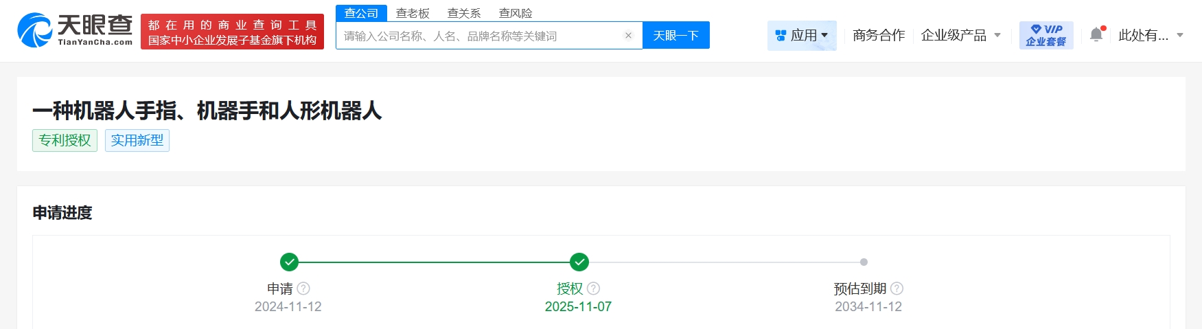 天眼查app显示,近日,宇树科技股份有限公司申请的“一种机器人手指、机器手和人形机器人”专利获授权。