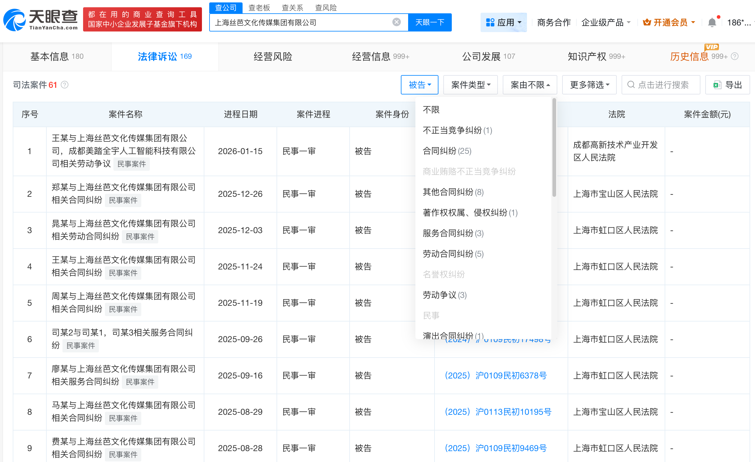 天眼查工商信息显示,上海丝芭文化传媒集团有限公司成立于2010年5月,法定代表人为王靖,注册资本约8927万人民币,经营范围包括营业性演出、演出经纪、广播电视节目制作经营等。股东信息显示,该公司由王靖、上海星澈创业投资合伙企业(有限合伙)等共同持股。天眼风险信息显示,该公司涉及多起法律诉讼,案由包括合同纠纷、其他合同纠纷等。风险信息显示,今年7月,该公司新增多起股权冻结信息。值得注意的是,其中,丝芭文化传媒集团董事长王靖所持该公司约4000万股权也被冻结。