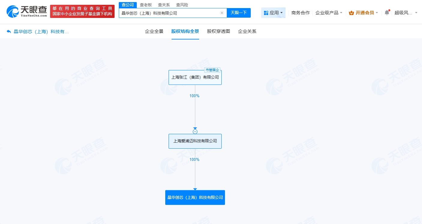 天眼查app显示,近日,晶华创芯(上海)科技有限公司成立,法定代表人为姜克,注册资本1亿人民币,经营范围包括电子元器件制造、半导体器件专用设备制造、仪器仪表制造、电子测量仪器制造等。股权全景穿透图显示,该公司由张江集团旗下上海爱浦迈科技有限公司全资持股。