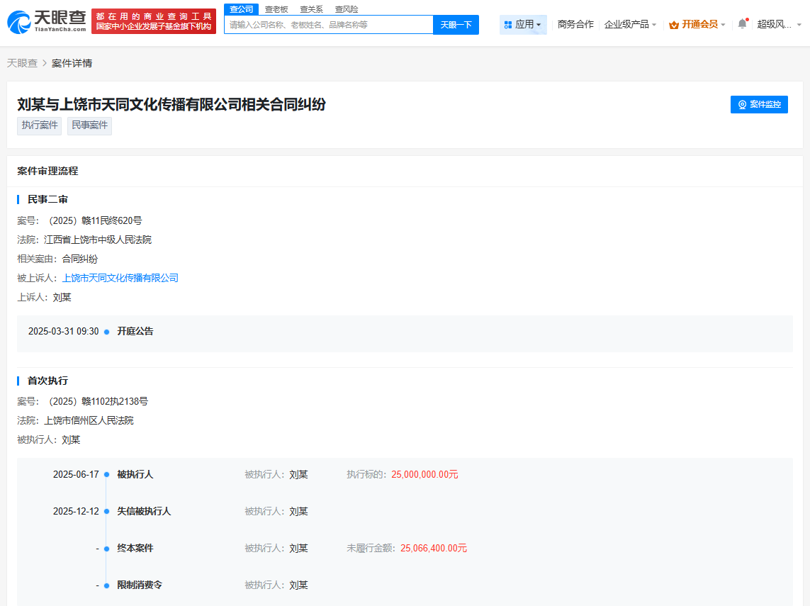 天眼查天眼风险信息显示,近日,刘世宇(mlxg)被限制高消费,同时因违反财产报告制度,被上饶市信州区人民法院列为失信被执行人(老赖)。案件流程信息显示,此前,刘世宇已因此案被执行2500万元。