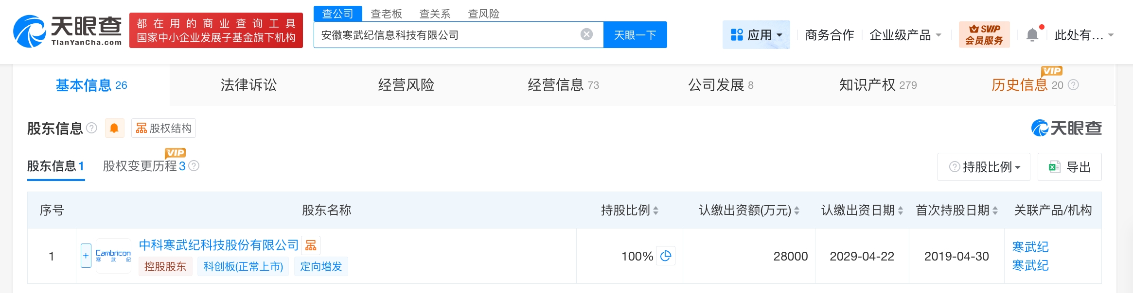 天眼查工商信息显示,近日,安徽寒武纪信息科技有限公司发生工商变更,注册资本由2亿人民币增至2.8亿人民币,增幅40%。