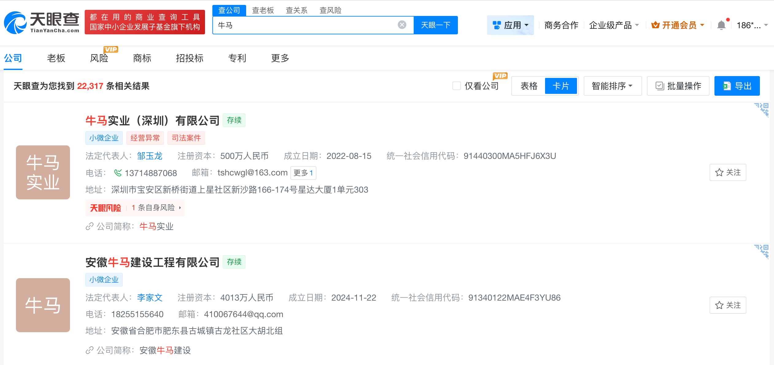 天眼查app显示,“牛马”“牛马牛马”曾被多方申请注册为商标,申请人包括苏州某科技有限公司、山东某餐饮连锁有限公司等,国际分类涉及科学仪器、餐饮住宿等,当前部分商标已成功注册。此外,已有多家公司以“牛马”命名,包括牛马实业(深圳)有限公司、安徽牛马建设工程有限公司等。
