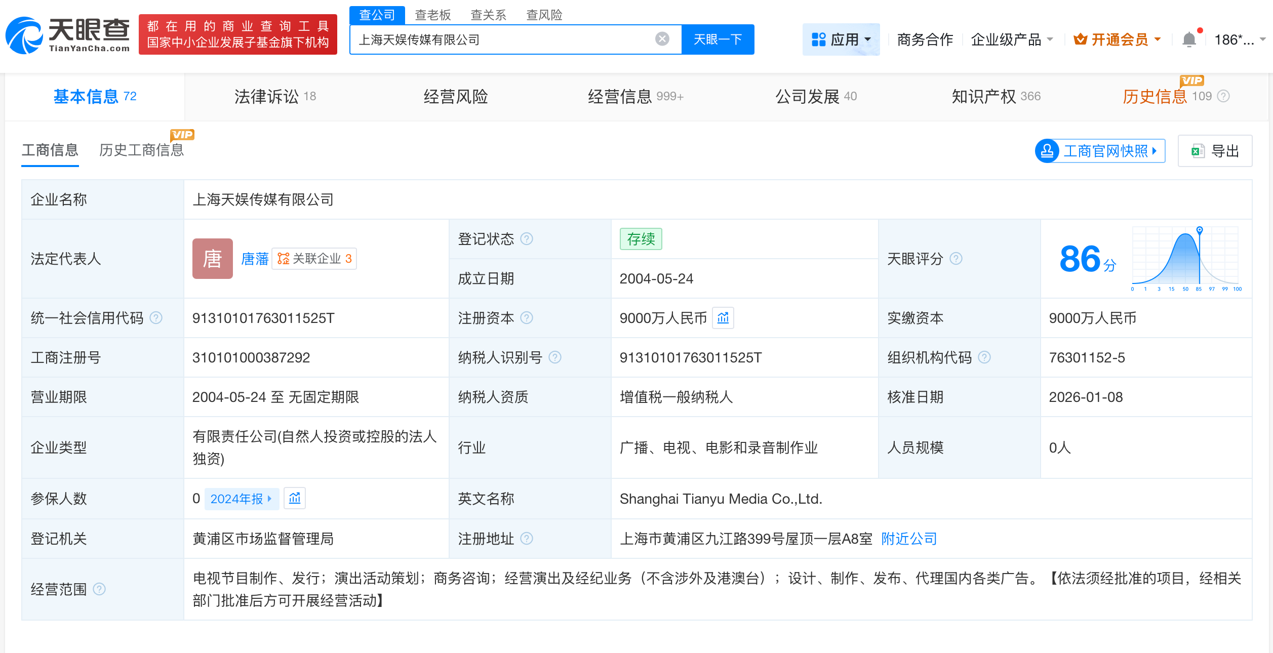 天眼查工商信息显示,近日,上海天娱传媒有限公司发生工商变更,申亚东卸任法定代表人,由唐藩接任。