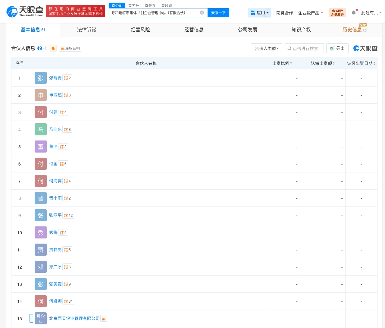 天眼查app显示,近日,呼和浩特市集体共创企业管理中心(有限合伙)成立,执行事务合伙人为北京西贝企业管理有限公司,出资额约9210万人民币,经营范围为企业管理咨询。合伙人信息显示,该企业由北京西贝企业管理有限公司及40余位合伙人共同出资。