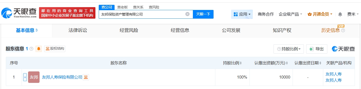 天眼查工商信息显示,1月4日,友邦保险资产管理有限公司成立,法定代表人为欧阳理良,注册资本1亿人民币,经营范围为保险资产管理。股东信息显示,该公司由友邦人寿保险有限公司全资持股。