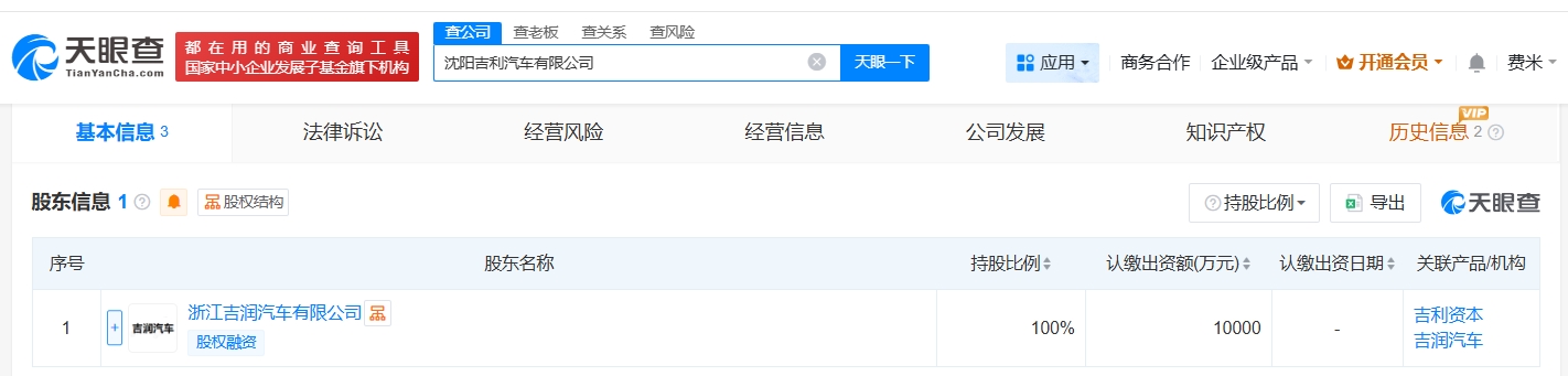 天眼查app显示,近日,沈阳吉利汽车有限公司成立,法定代表人为王全心,注册资本1亿人民币,经营范围包括汽车零部件及配件制造、汽车零配件零售、汽车零部件研发、信息技术咨询服务等,由浙江吉润汽车有限公司全资持股。