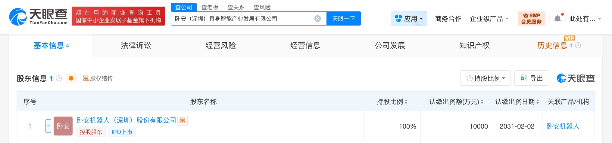 天眼查app显示,近日,卧安(深圳)具身智能产业发展有限公司成立,法定代表人为李志晨,注册资本1亿人民币,经营范围为智能机器人的研发,人工智能应用软件开发,以自有资金从事投资活动,企业管理,信息咨询服务,技术服务、技术开发、技术咨询、技术交流、技术转让、技术推广。股东信息显示,该公司由卧安机器人(深圳)股份有限公司全资持股。