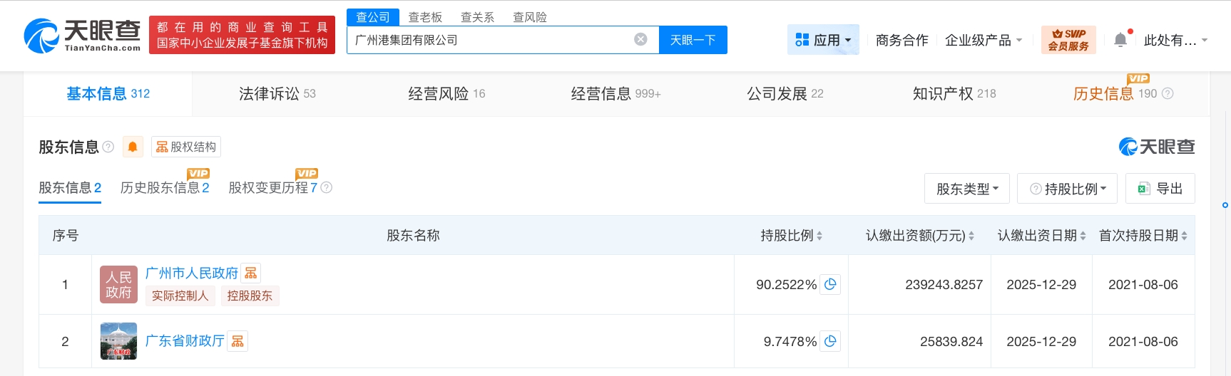 天眼查工商信息显示,近日,广州港集团有限公司发生工商变更,注册资本由约25.8亿人民币增至约26.5亿人民币。