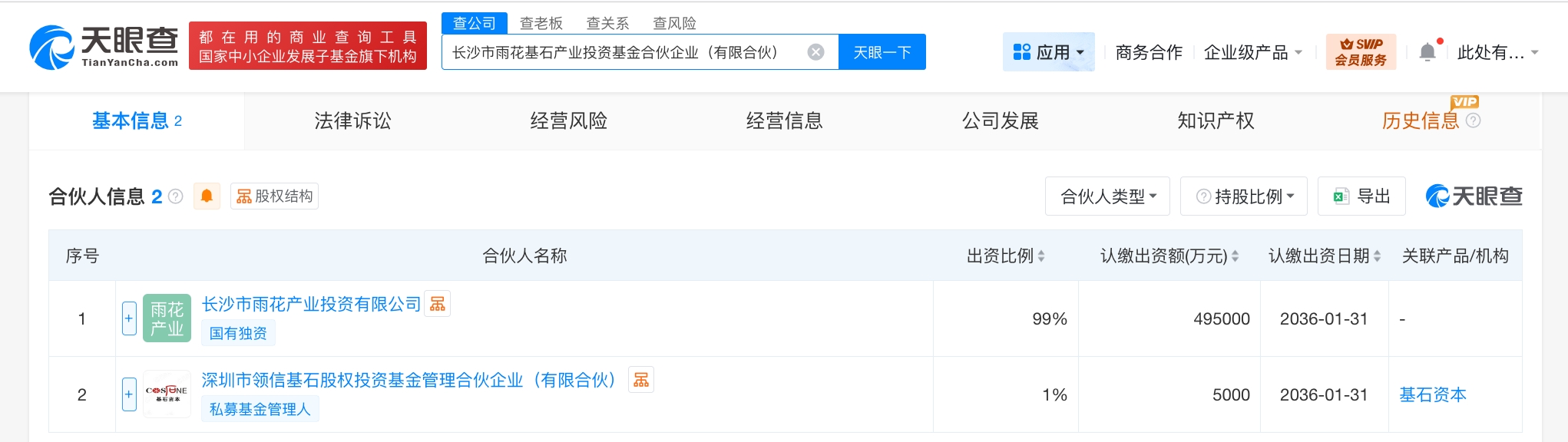 天眼查工商信息显示,近日,长沙市雨花基石产业投资基金合伙企业(有限合伙)成立,执行事务合伙人为深圳市领信基石股权投资基金管理合伙企业(有限合伙),出资额50亿人民币,经营范围为以私募基金从事股权投资、投资管理、资产管理等活动,创业投资。合伙人信息显示,该基金由长沙市雨花产业投资有限公司、深圳市领信基石股权投资基金管理合伙企业(有限合伙)共同出资。