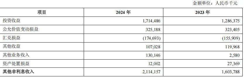2024年,青岛银行其他非利息收入同比拉升31.82%至21.14亿元。其中,投资收益和公允价值变动损益合计为20.4亿元,较2023年增加4.3亿元,增幅26.71%。