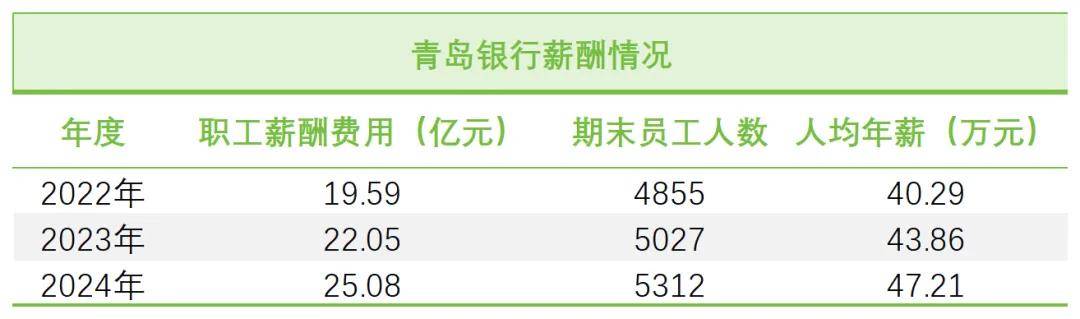 这一速度不止跑赢青岛银行2024年的营收增速(8.22%),更推动其人均年薪攀升至47.21万元,同比涨幅达7.64%,相当于每人每月入手近4万元。