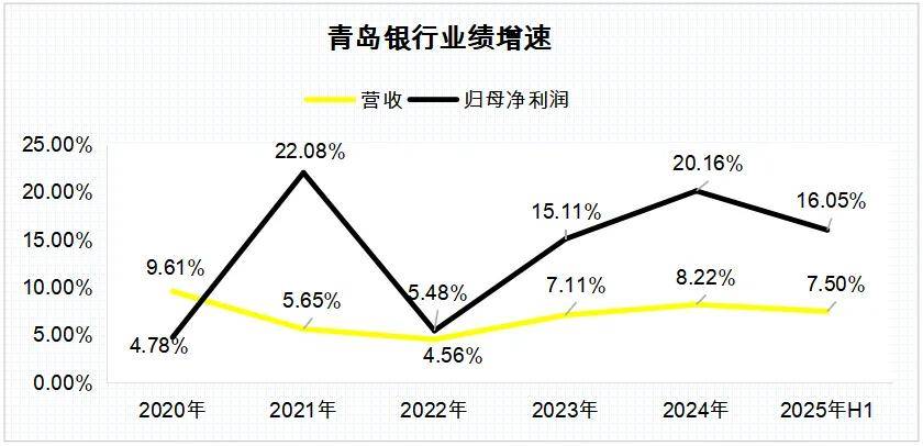 青岛银行最新公布的业绩快报显示,2025年上半年,其营收和归母净利润分别为76.62亿元、30.65亿元,较上年同期分别上升7.5%、16.05%。