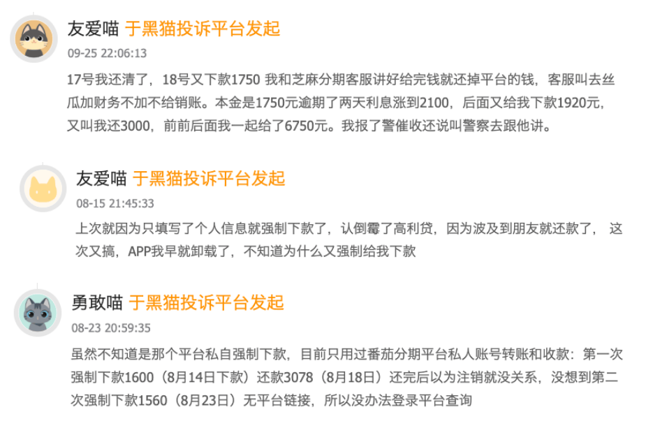 而黑猫投诉平台显示,类似的针对同一用户的反复“收割”并不少见。