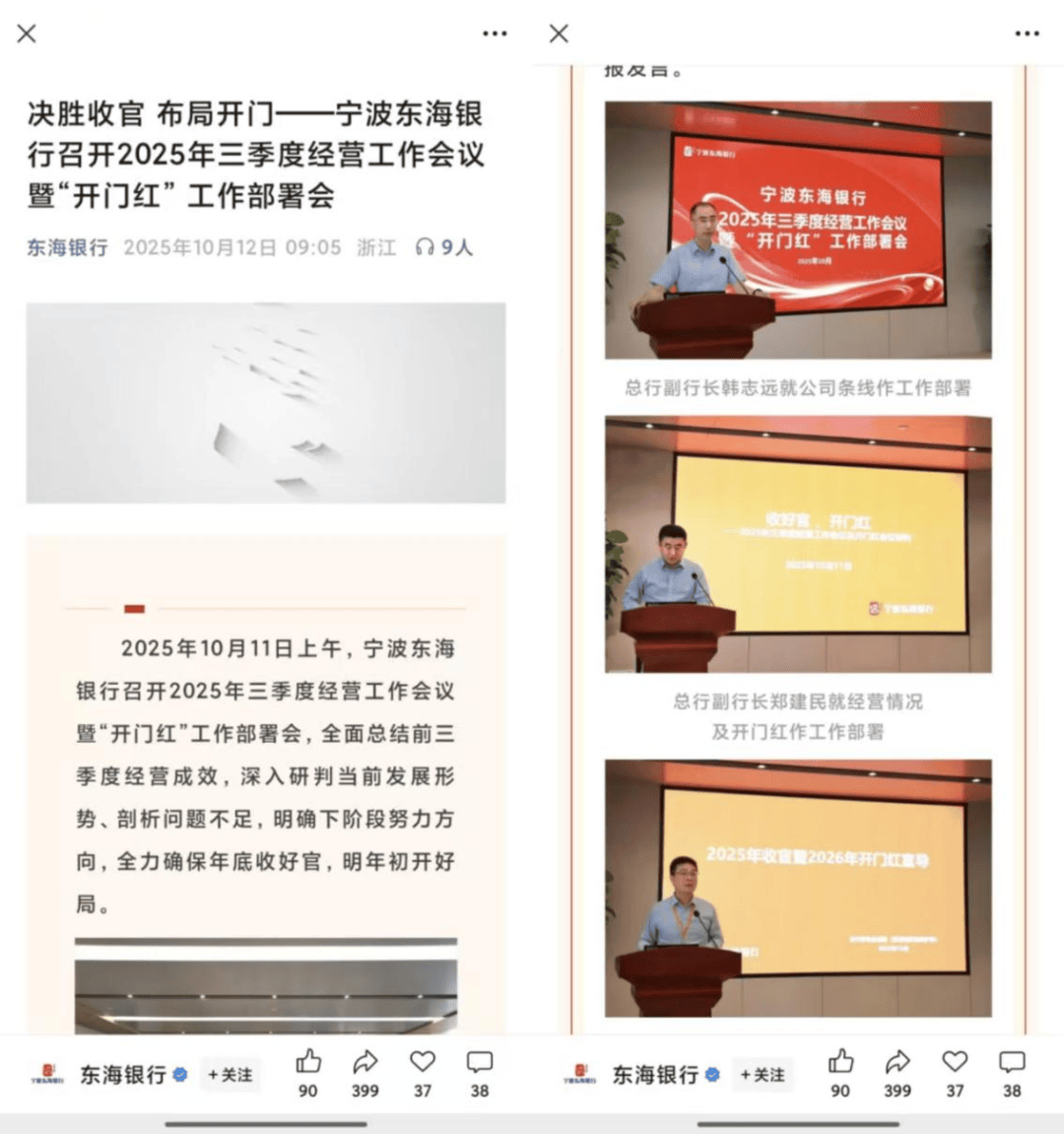 典型如宁波东海银行。早在10月11日,该行便展开行动,并在公众号发文称,“以时不我待的紧迫感、真抓实干的执行力,抢占时间窗口,做到‘快、稳、准、细、实’,力争在顺利完成年底收官的同时,在来年市场博弈中站稳脚跟、赢得优势。