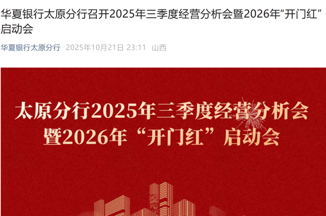同期,华夏银行太原分行也召开动员大会,将“开门红”任务指标提前拆解到员工,重点锚定存款与信贷投放,并由领导亲自为2026年“开门红”必胜题字。