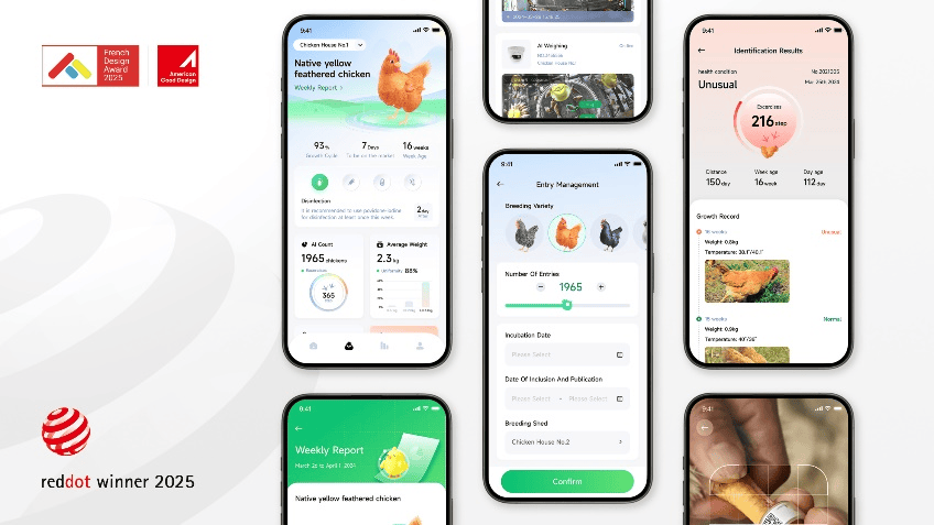 在科技助农领域,马上消费获奖案例“智慧养殖产品页面设计”精准捕捉农户 “数据记录繁琐、核心信息难掌握”的痛点,采用高辨识度家禽图标搭配引导动画降低认知门槛,核心养殖数据实时可视让信息一目了然,优化操作流程实现核心功能零门槛上手,更贴合养殖场景推送趣味动画与防疫、喂食等实用提醒,让农户在使用中感受到 “被关注” 的温暖。