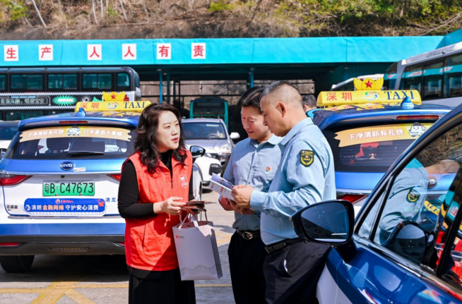 中信银行深圳分行联合广电集团及本地出租车企业,组建“金融随行”主题出租车队。车身张贴统一设计的消保车贴,车内摆放金融知识折页,椅背显示屏循环播放反诈短视频及公益海报,让穿梭于大街小巷的出租车成为“流动的金融安全课堂”。同时,各网点积极对接周边的快递站点,利用从业者晨会、工间休息等碎片化时间开展“送课上门”微宣讲,重点讲解互联网贷款乱象防范、征信修复骗局识别、职业背债人风险、非法代理退保理赔、个人信息过度索取等内容,精准守护新就业形态劳动者的“钱袋子”。